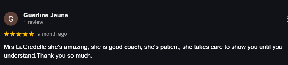 — Junie St-Clair, FL“I was struggling with my business… Thanks to God and her, my business is now known everywhere. She is a great Coach and a great Leader.”